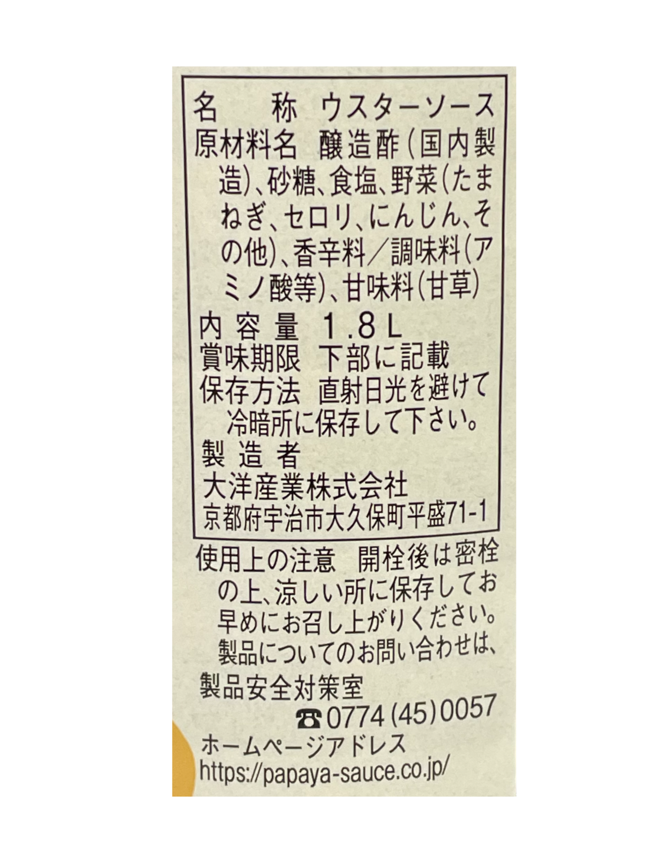 大洋産業 パパヤソースウスター 1.8L ×6本