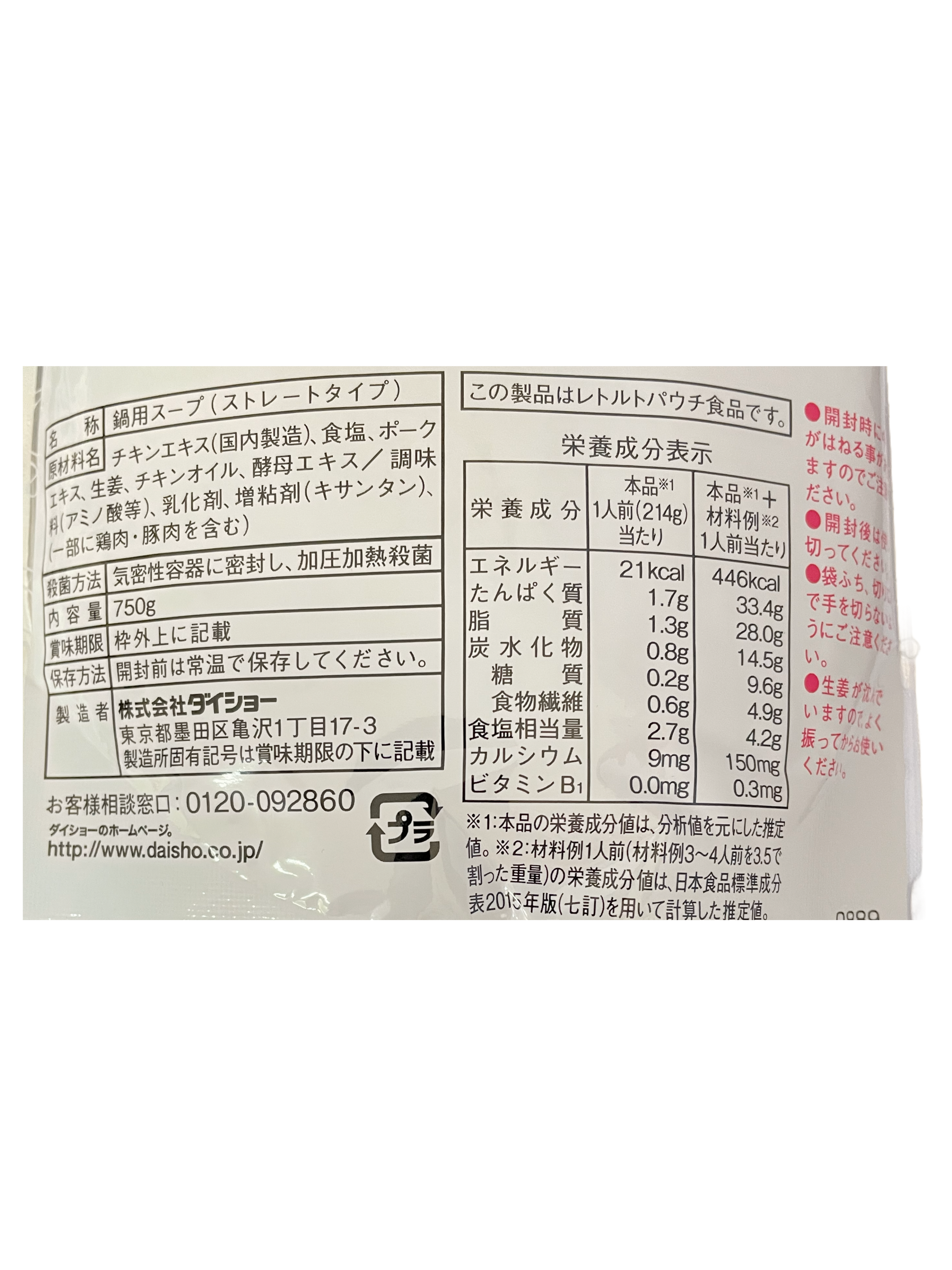 ダイショー 博多名物 水炊きスープ 750g ×3袋